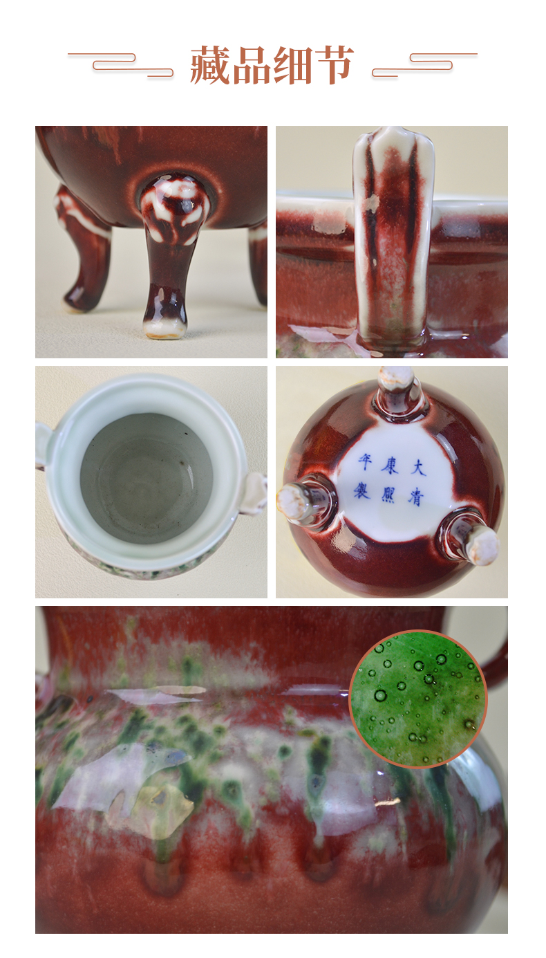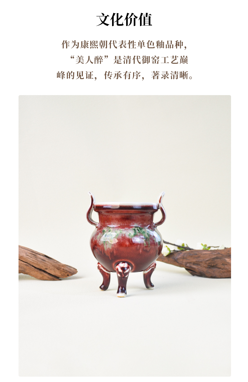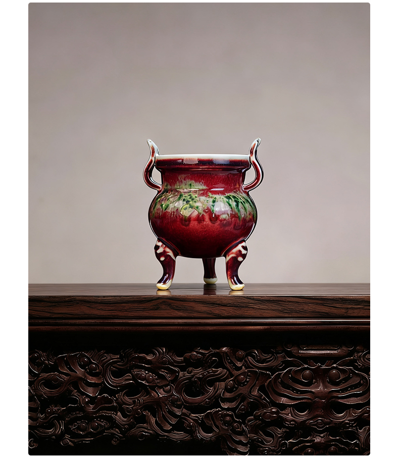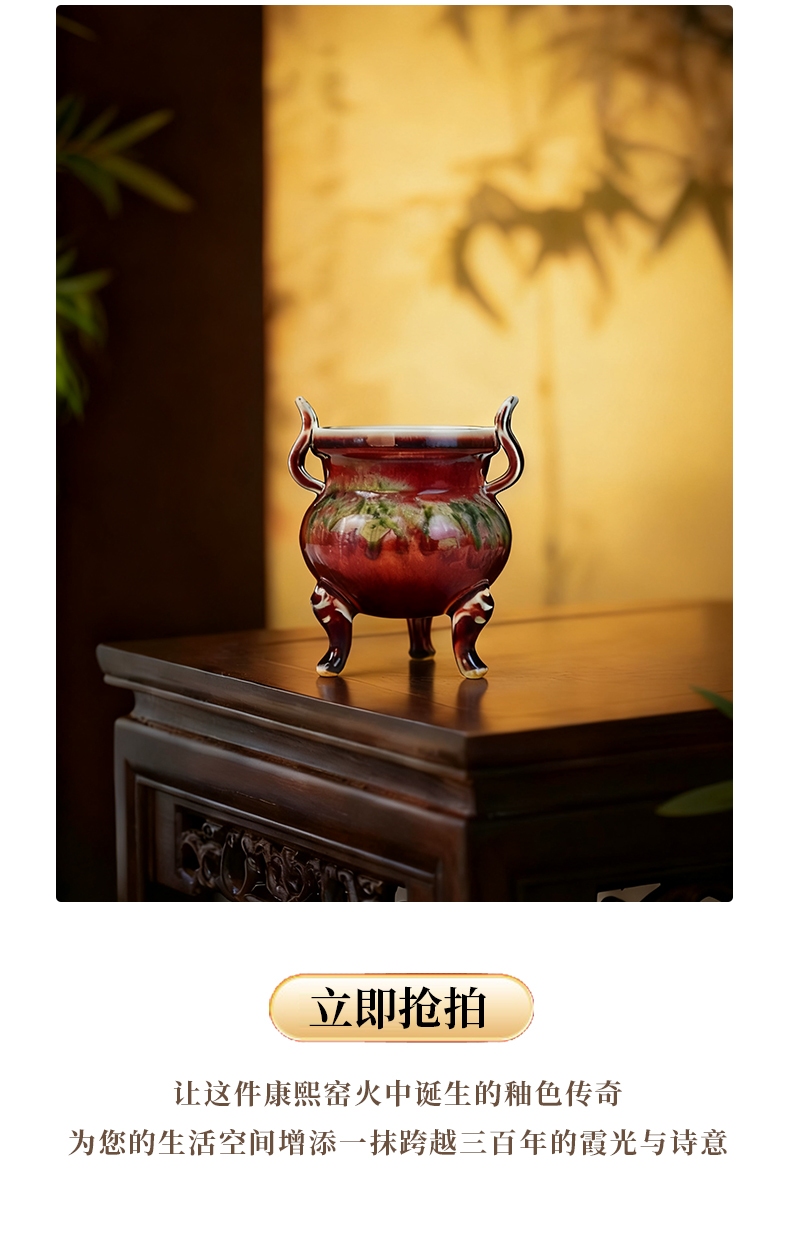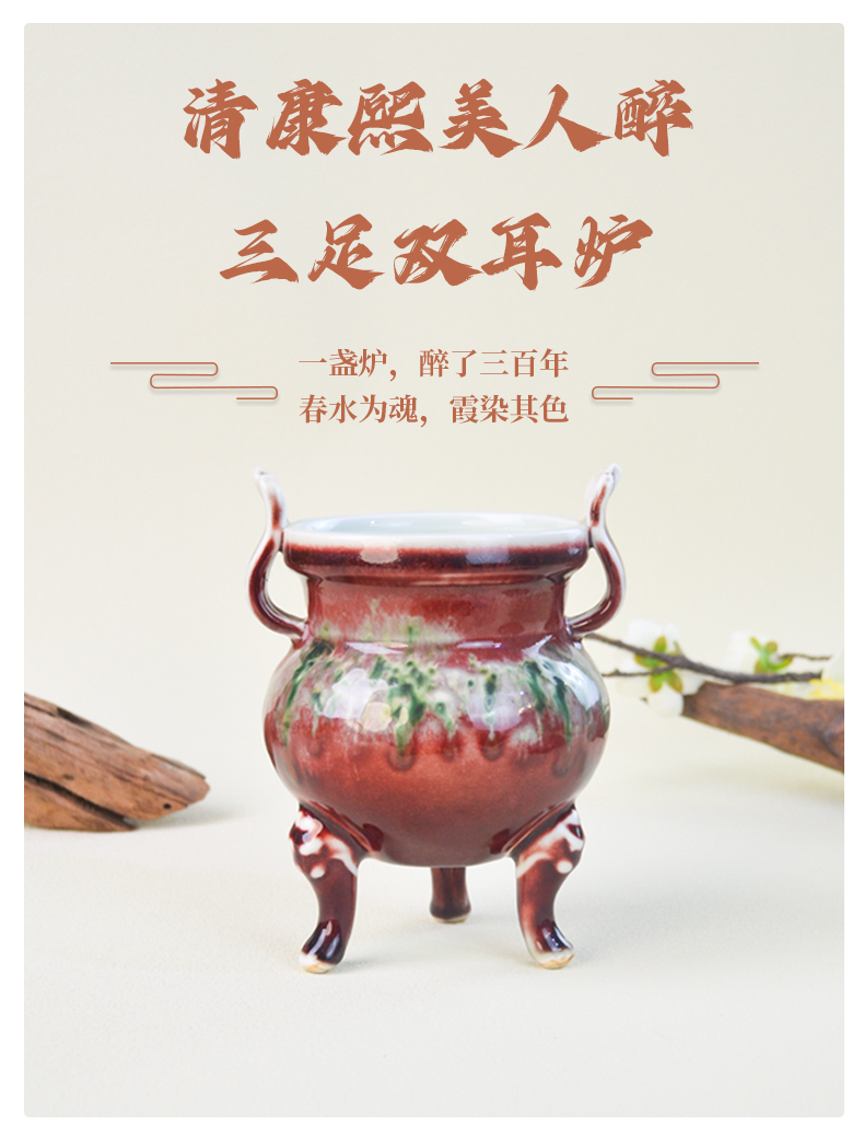 清康熙美人醉三足双耳炉·窑变赤焰珍赏