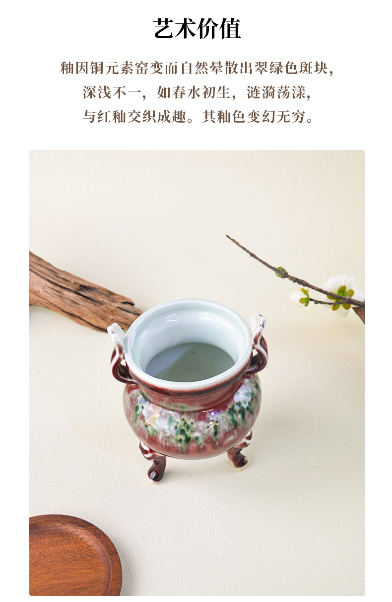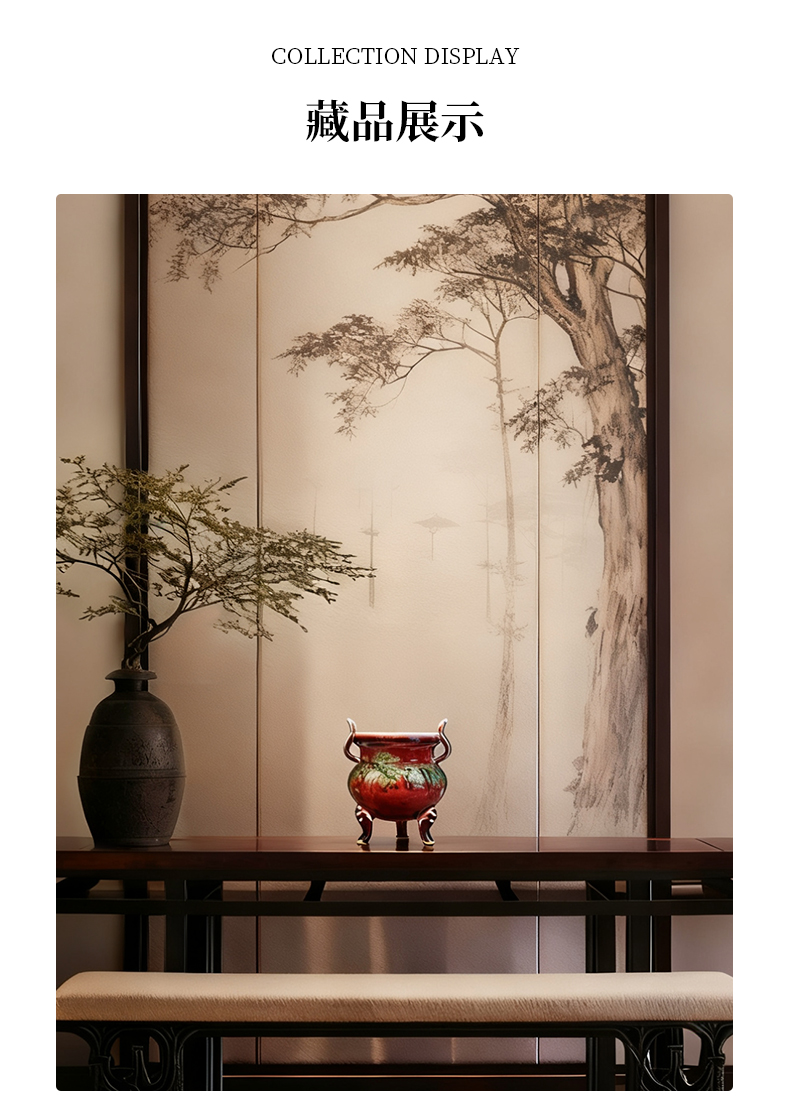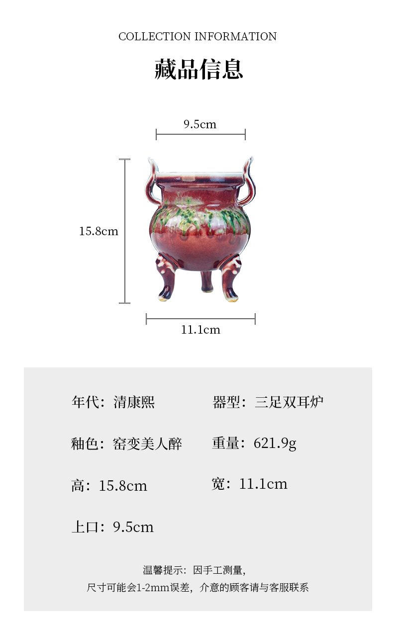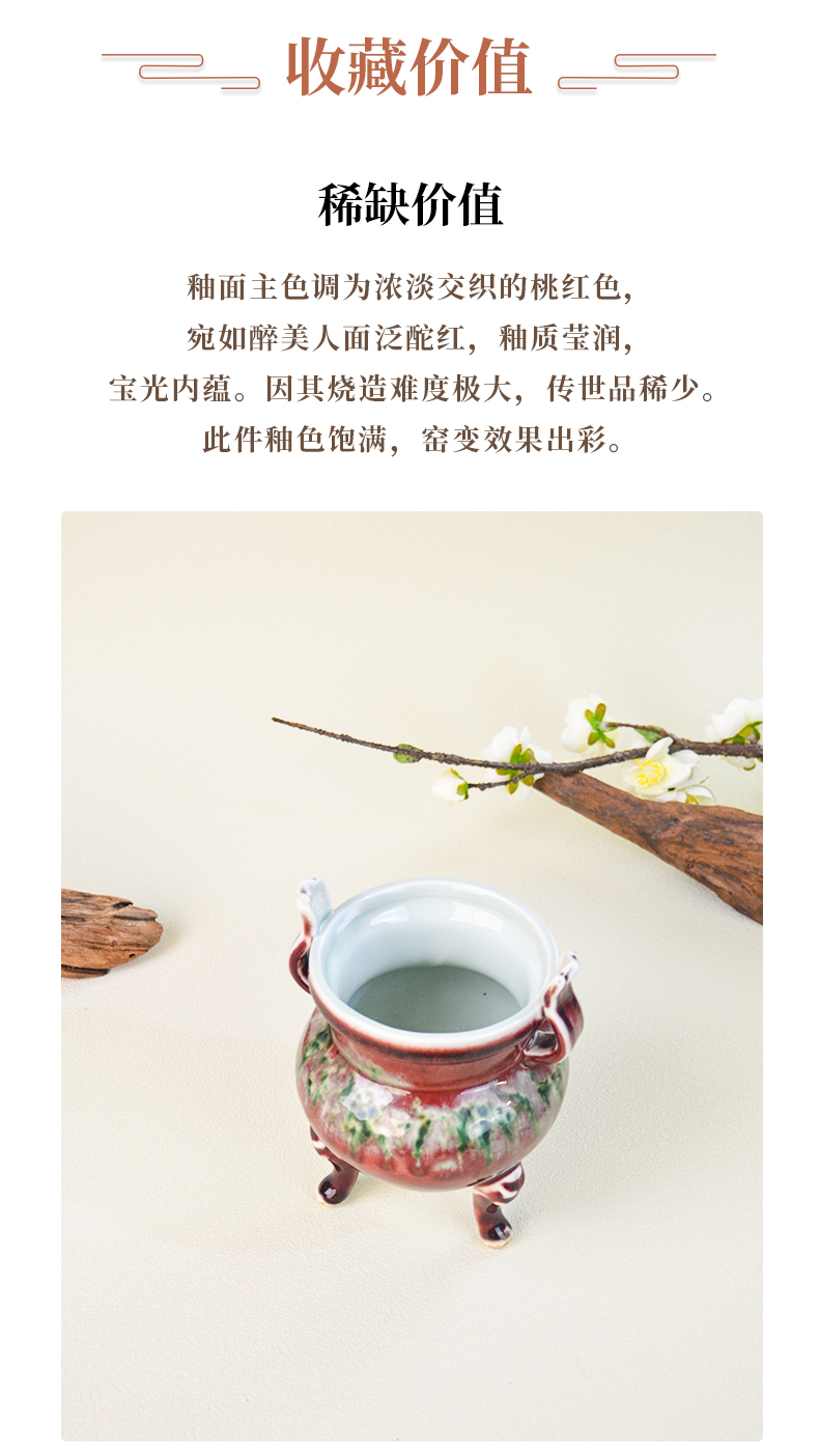 清康熙美人醉三足双耳炉·窑变赤焰珍赏