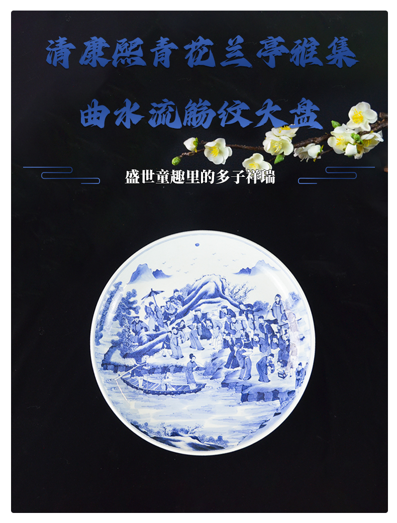 当前位置:产品服务 - 清康熙青花兰亭雅集曲水流觞纹大盘