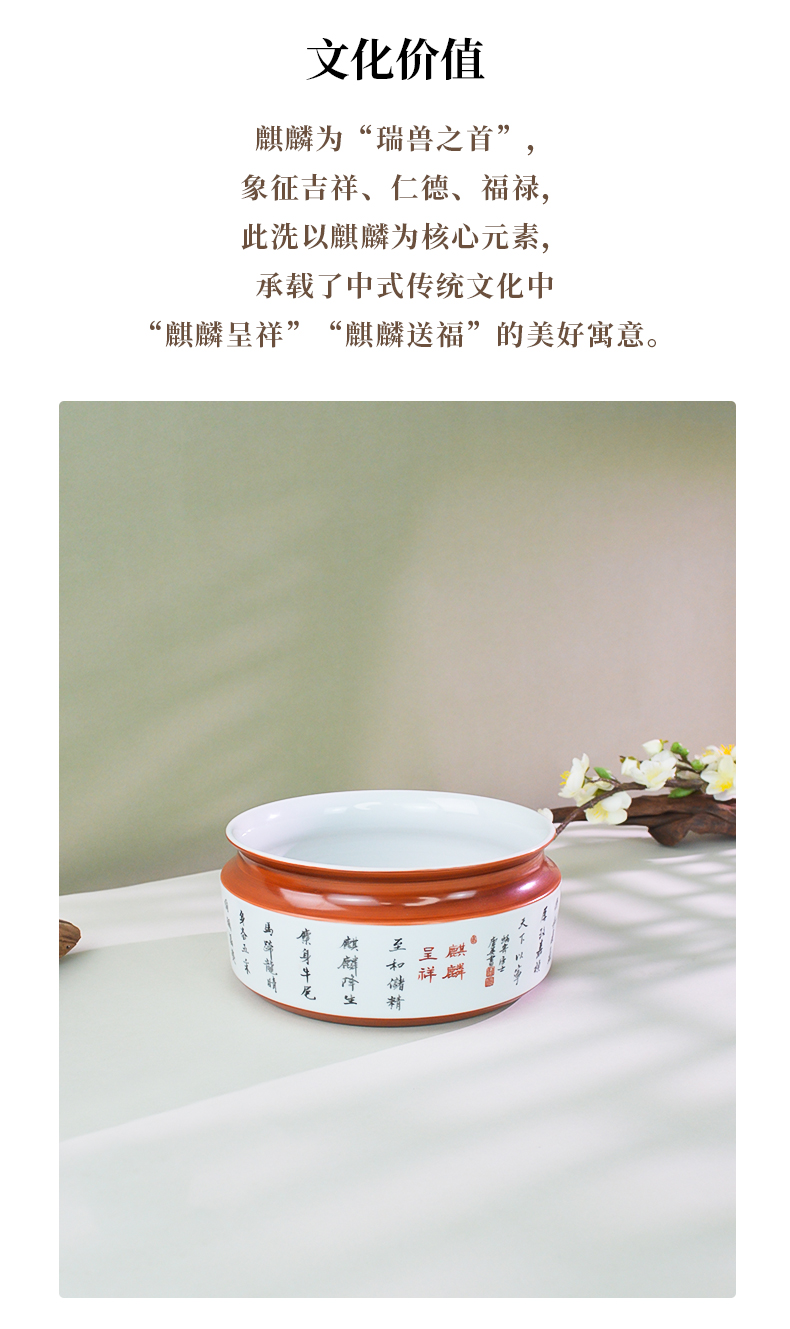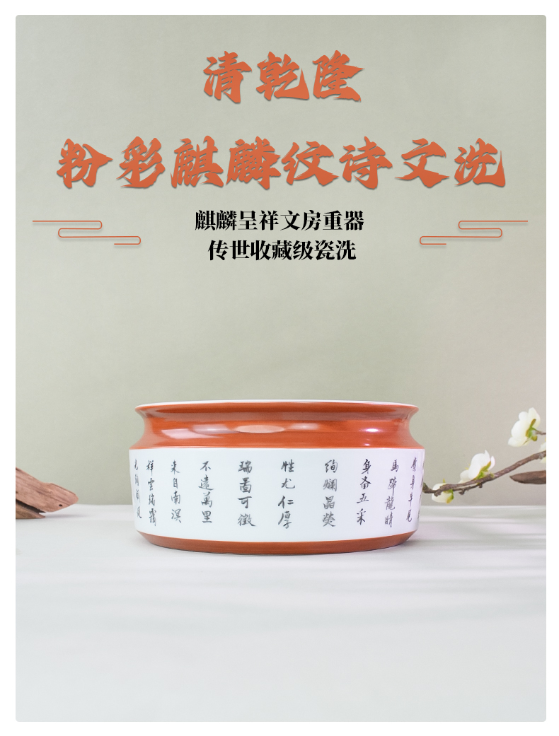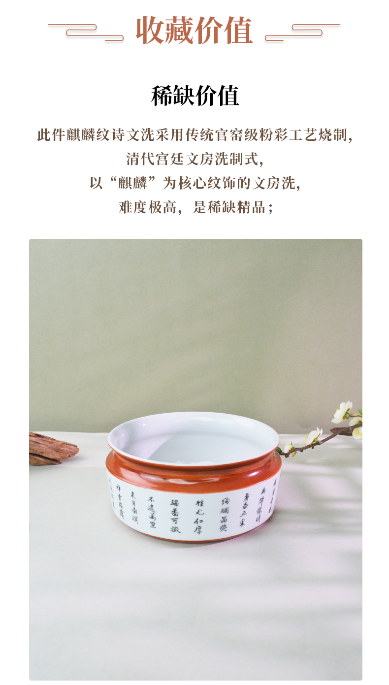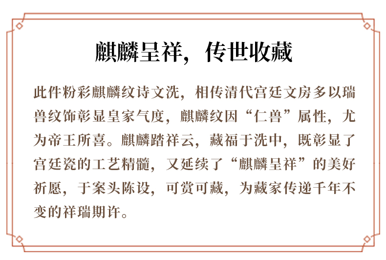 馆藏级·粉彩麒麟纹诗文洗