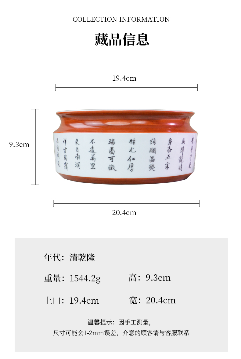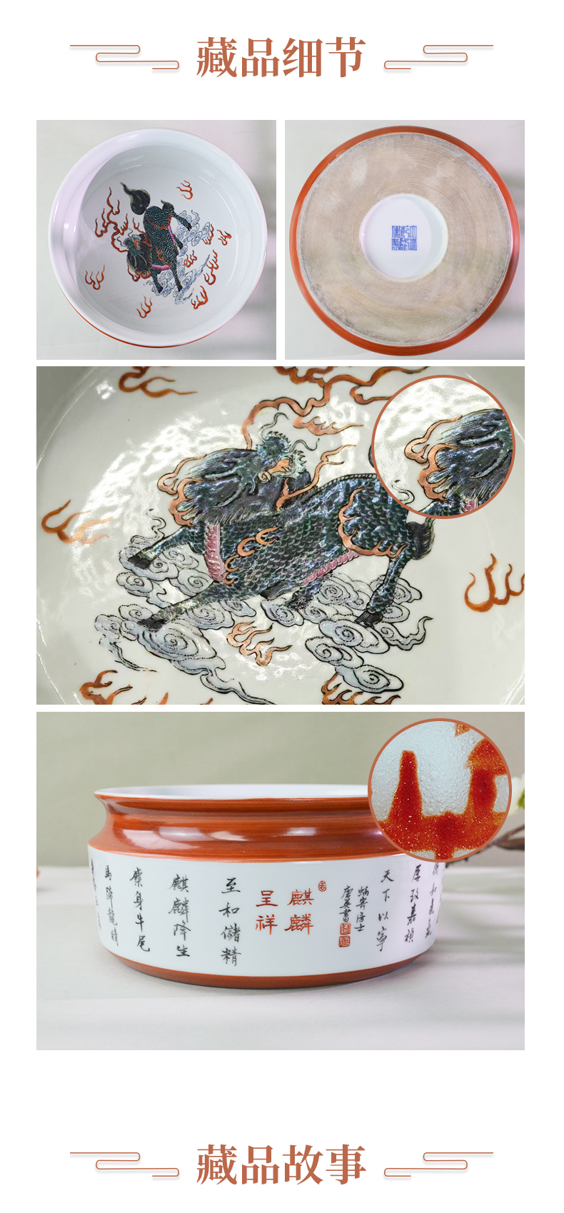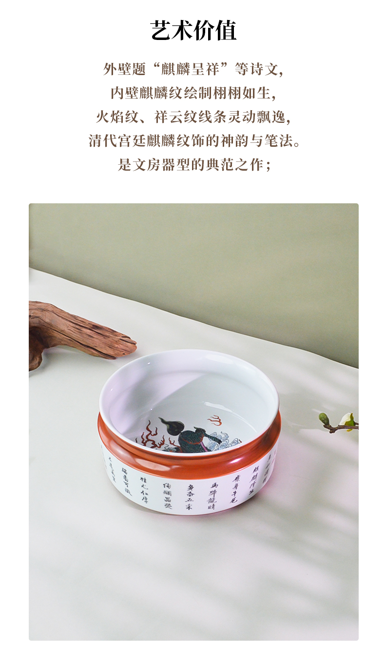 馆藏级·粉彩麒麟纹诗文洗