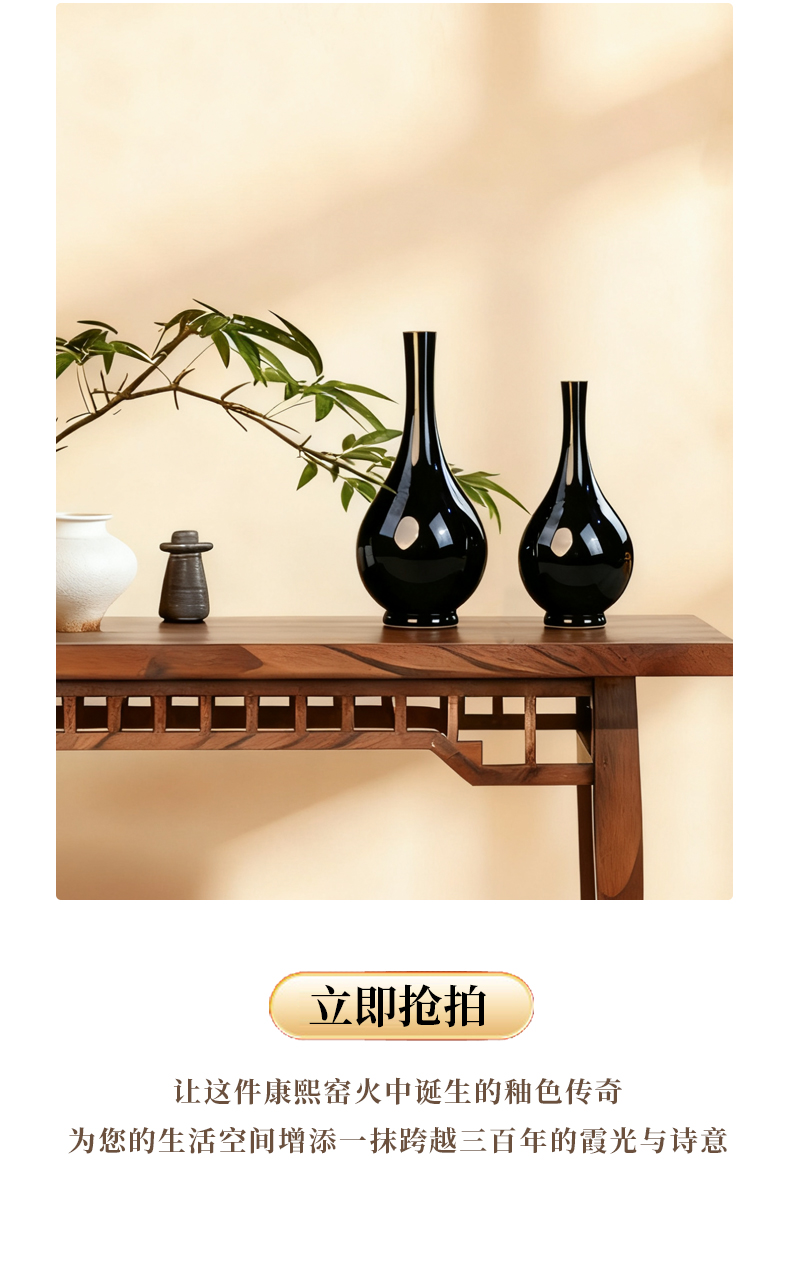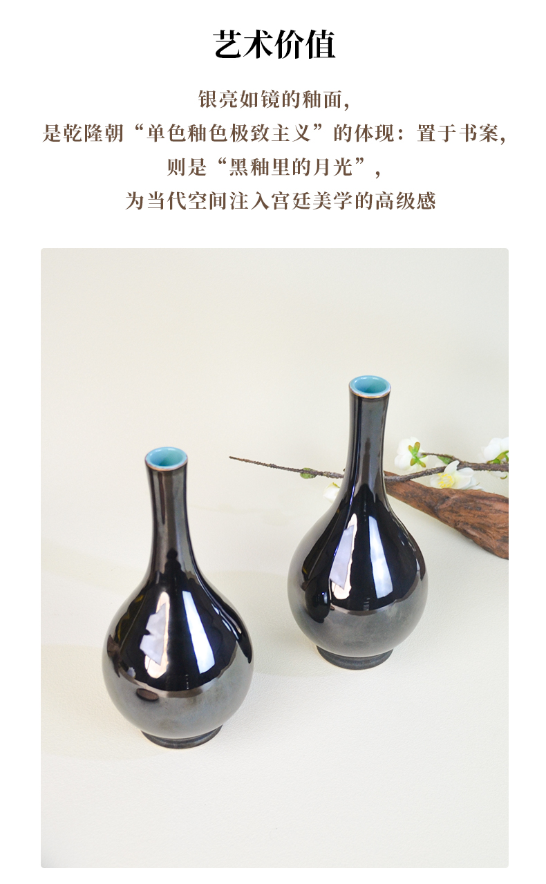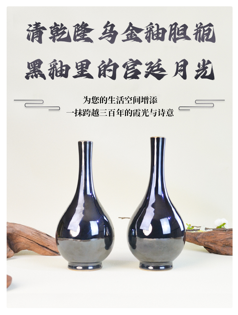 清乾隆乌金釉胆瓶 · 黑釉里的宫廷月光