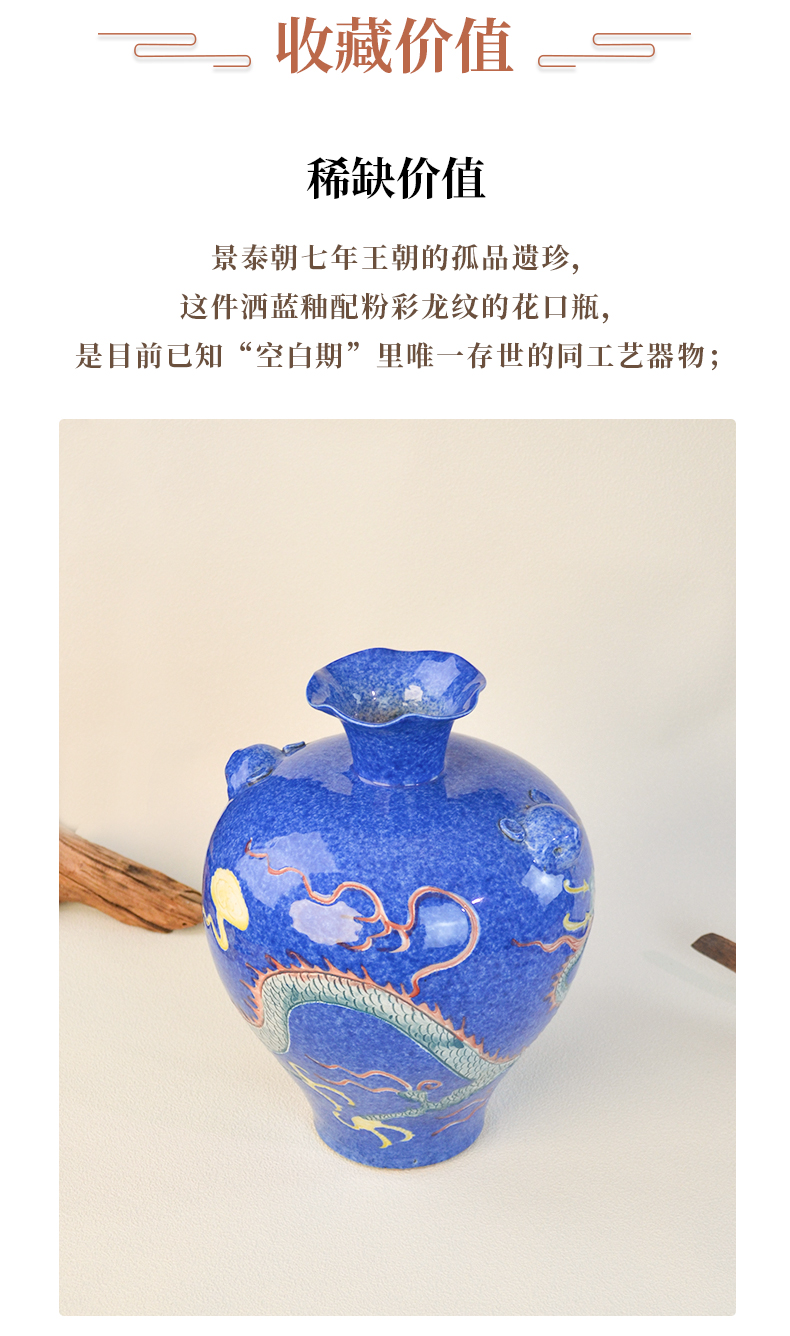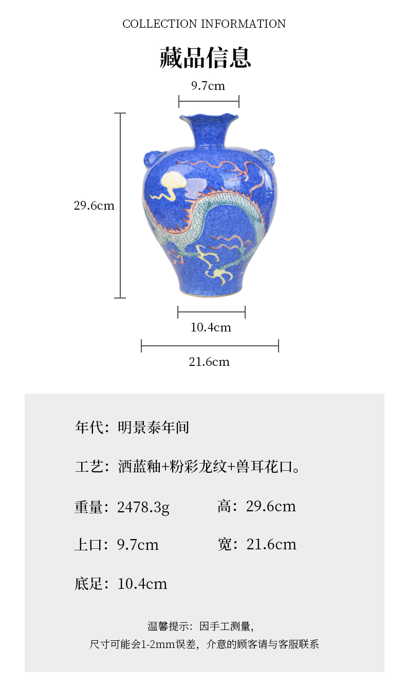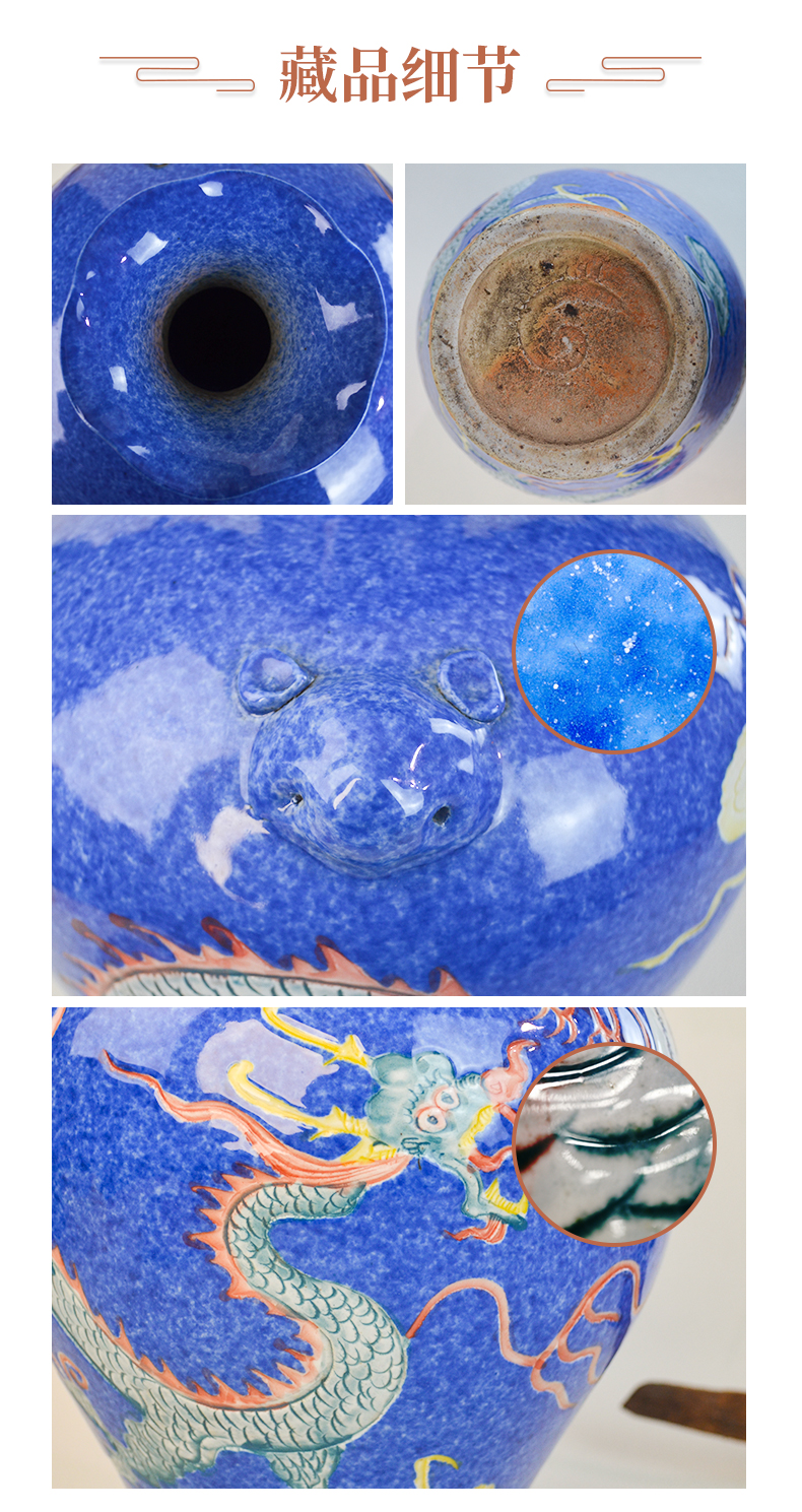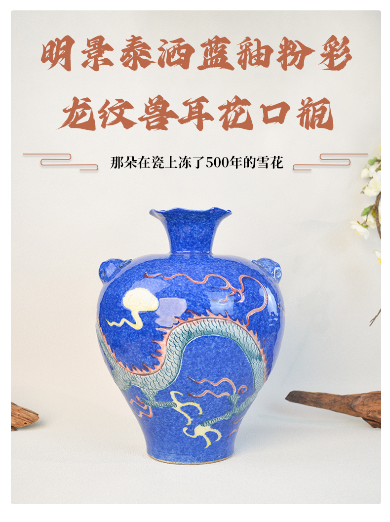 明景泰洒蓝釉粉彩龙纹兽耳花口瓶