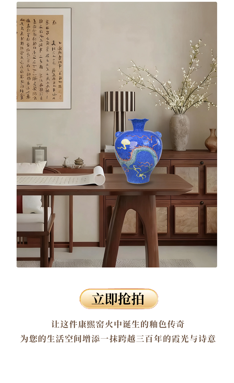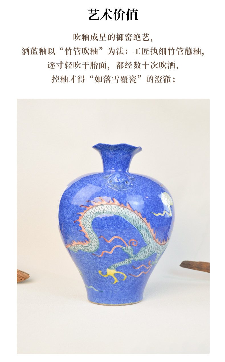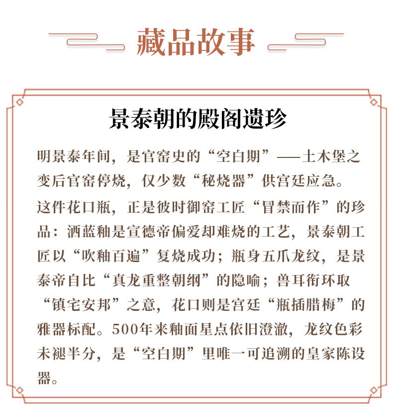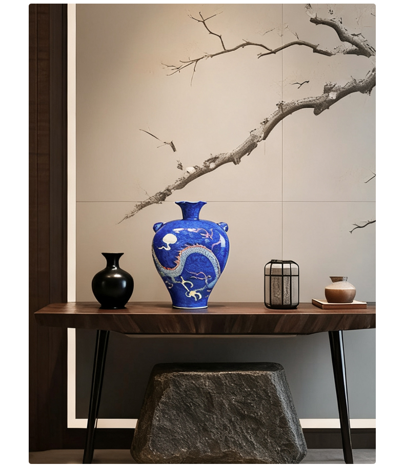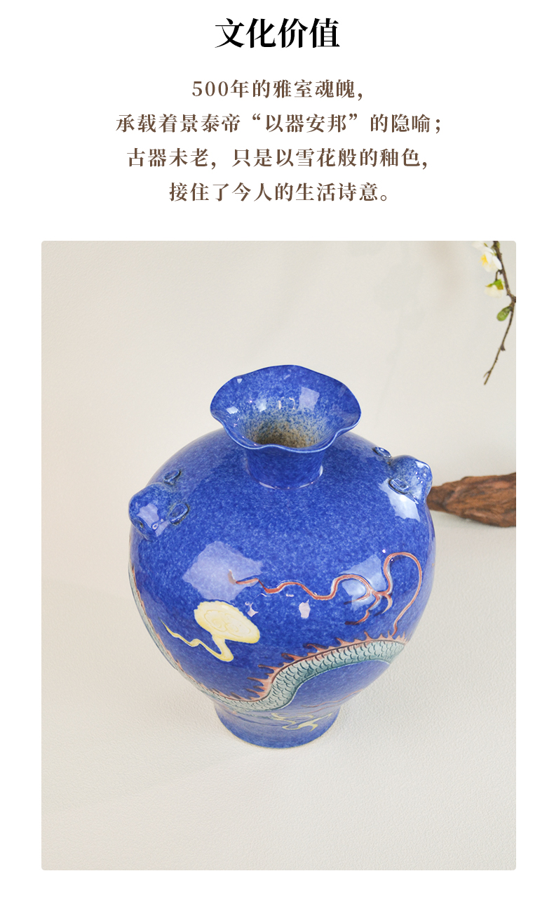明景泰洒蓝釉粉彩龙纹兽耳花口瓶