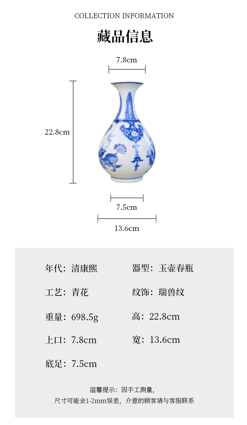 清康熙盛世·青花瑞兽纹玉壶春瓶