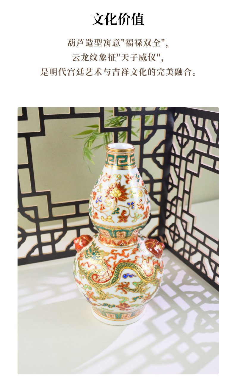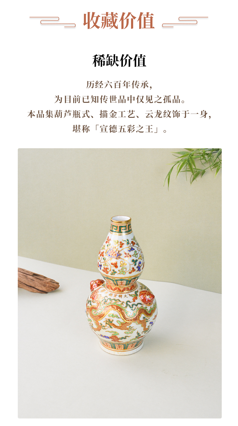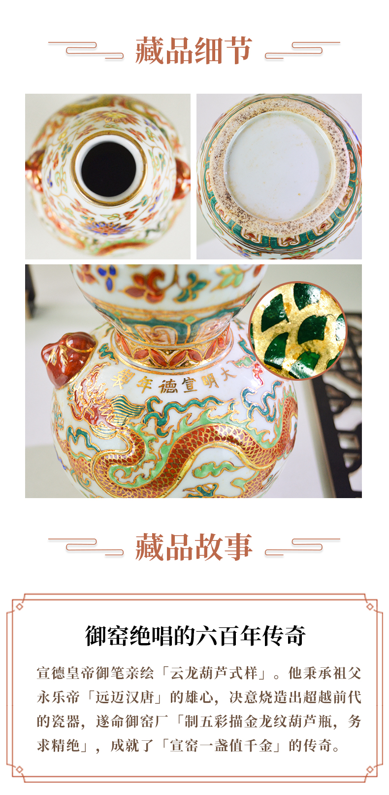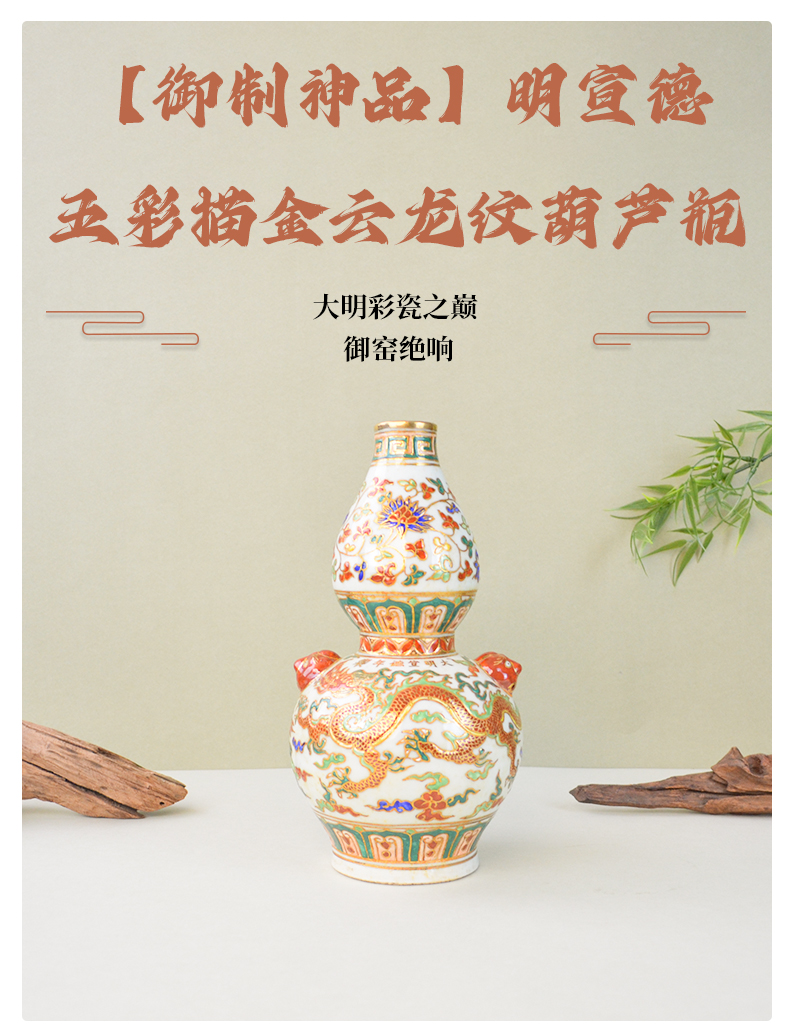 【御制神品】明宣德五彩描金云龙纹葫芦瓶