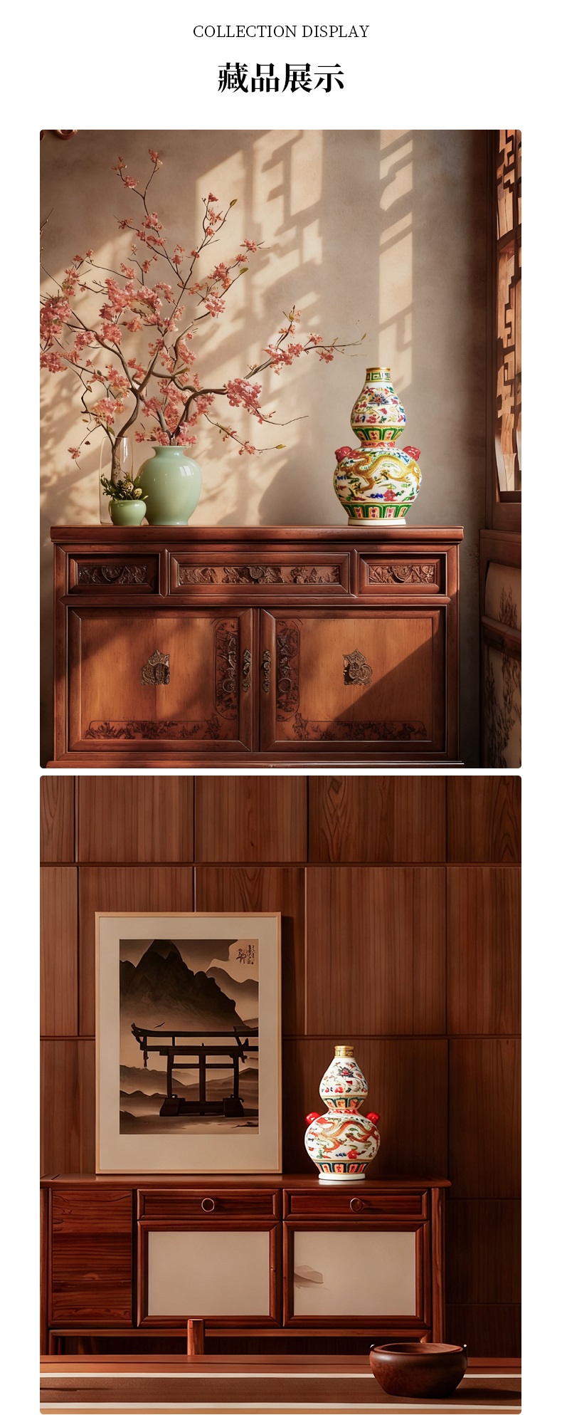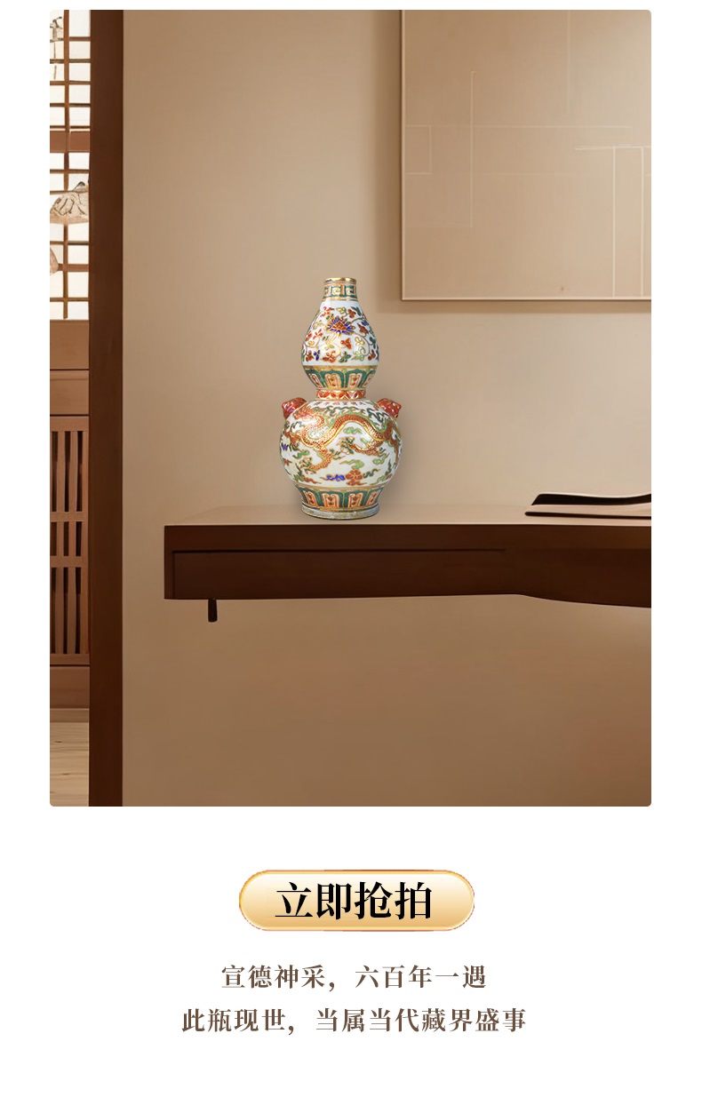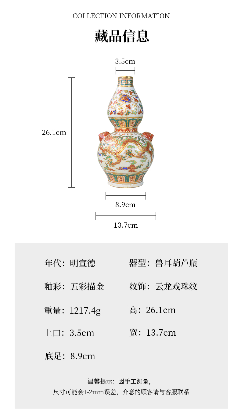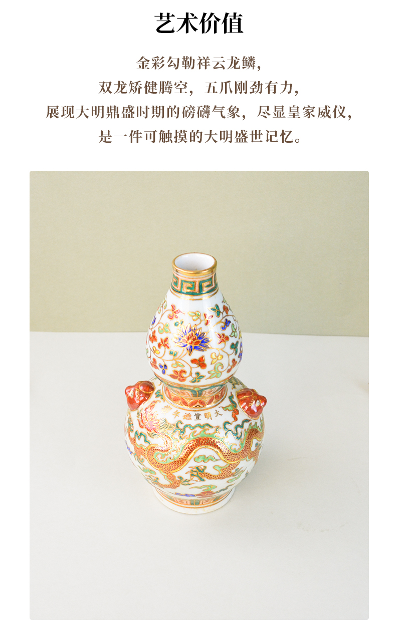 【御制神品】明宣德五彩描金云龙纹葫芦瓶