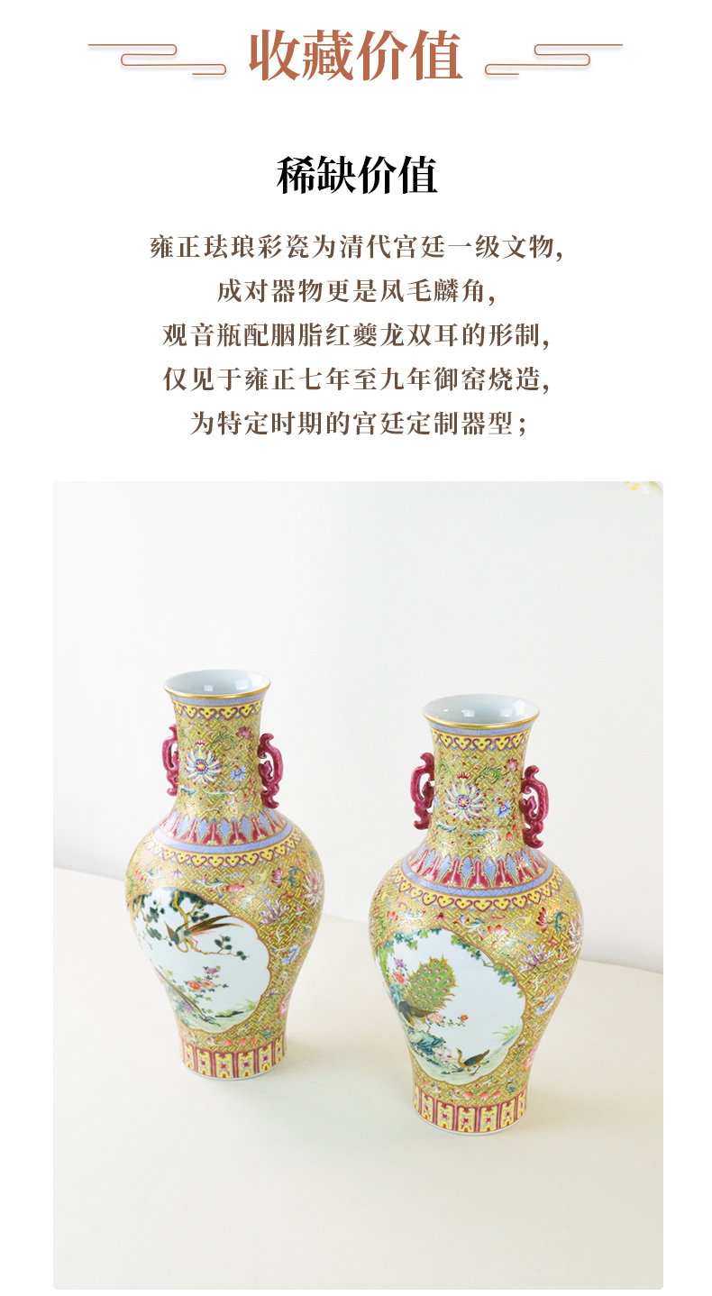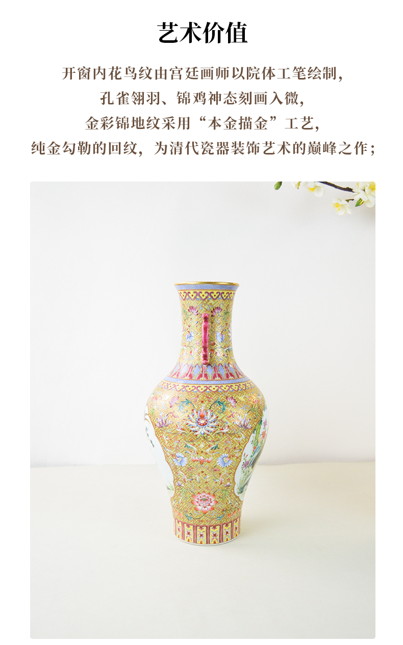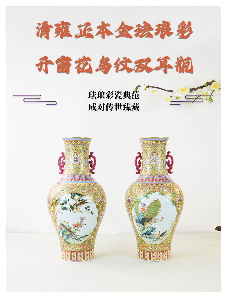 清雍正本金珐琅彩开窗花鸟纹双耳瓶