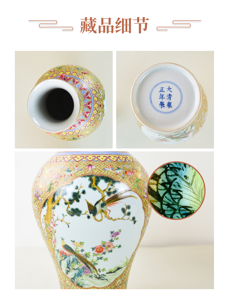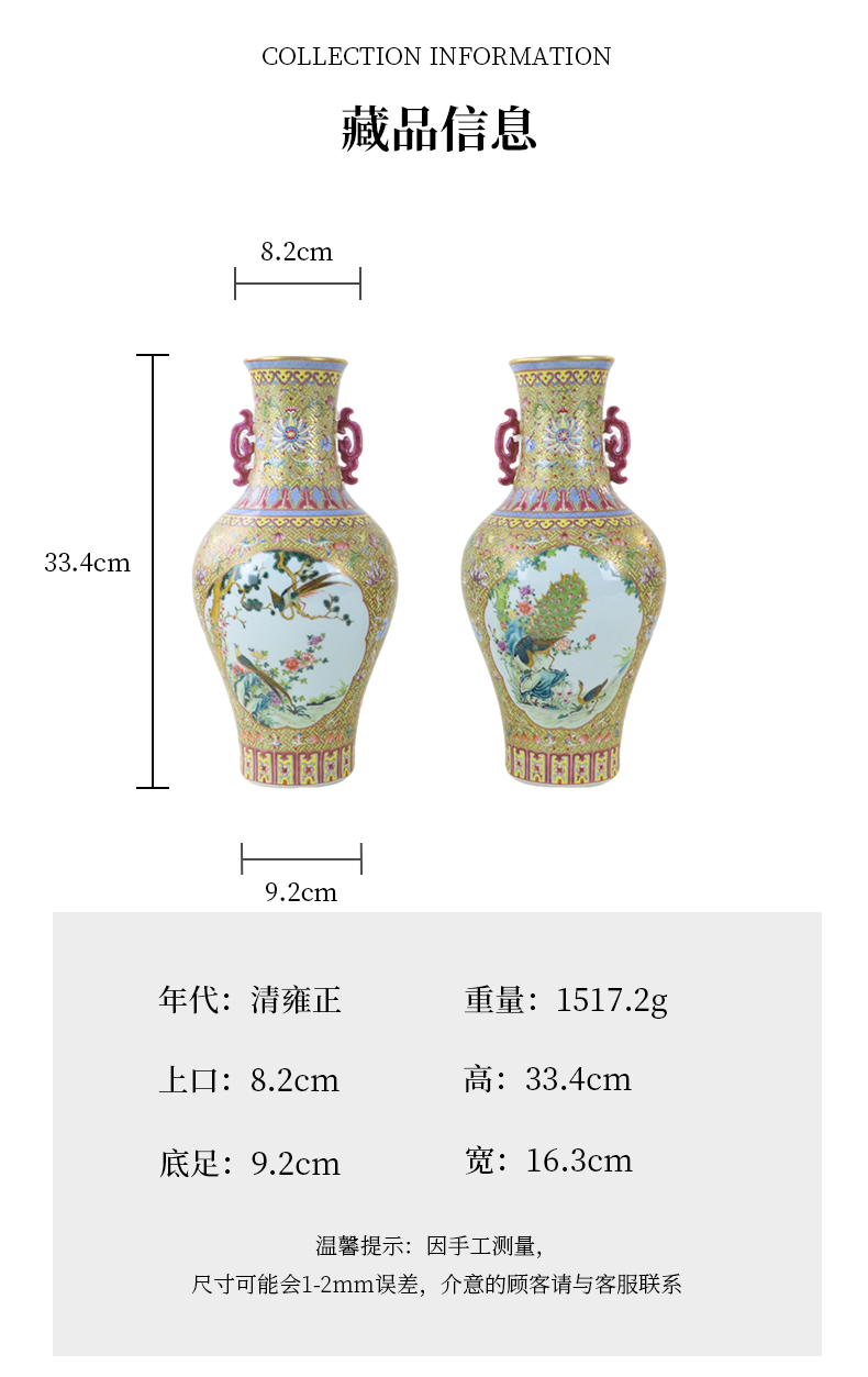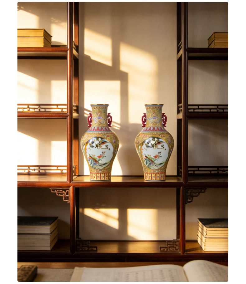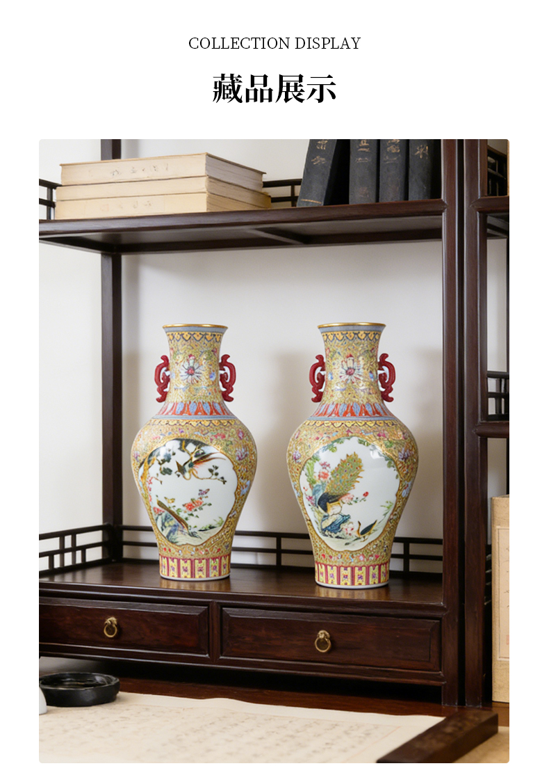 清雍正本金珐琅彩开窗花鸟纹双耳瓶