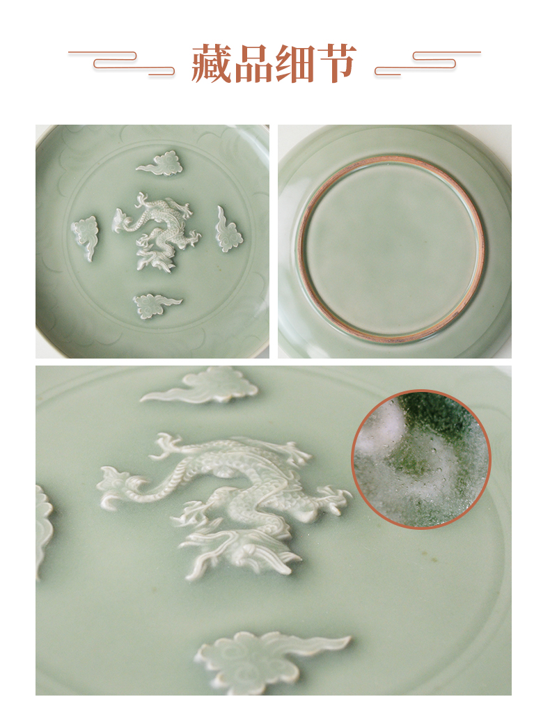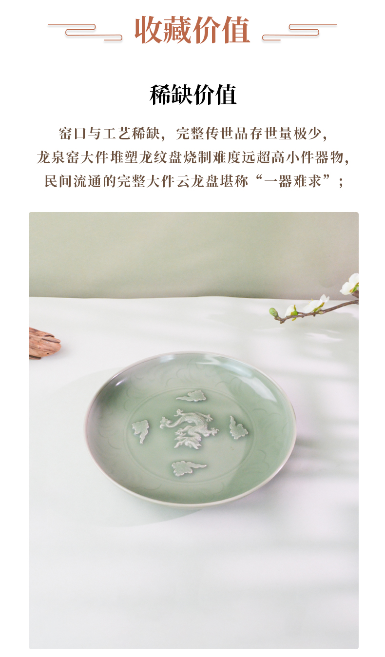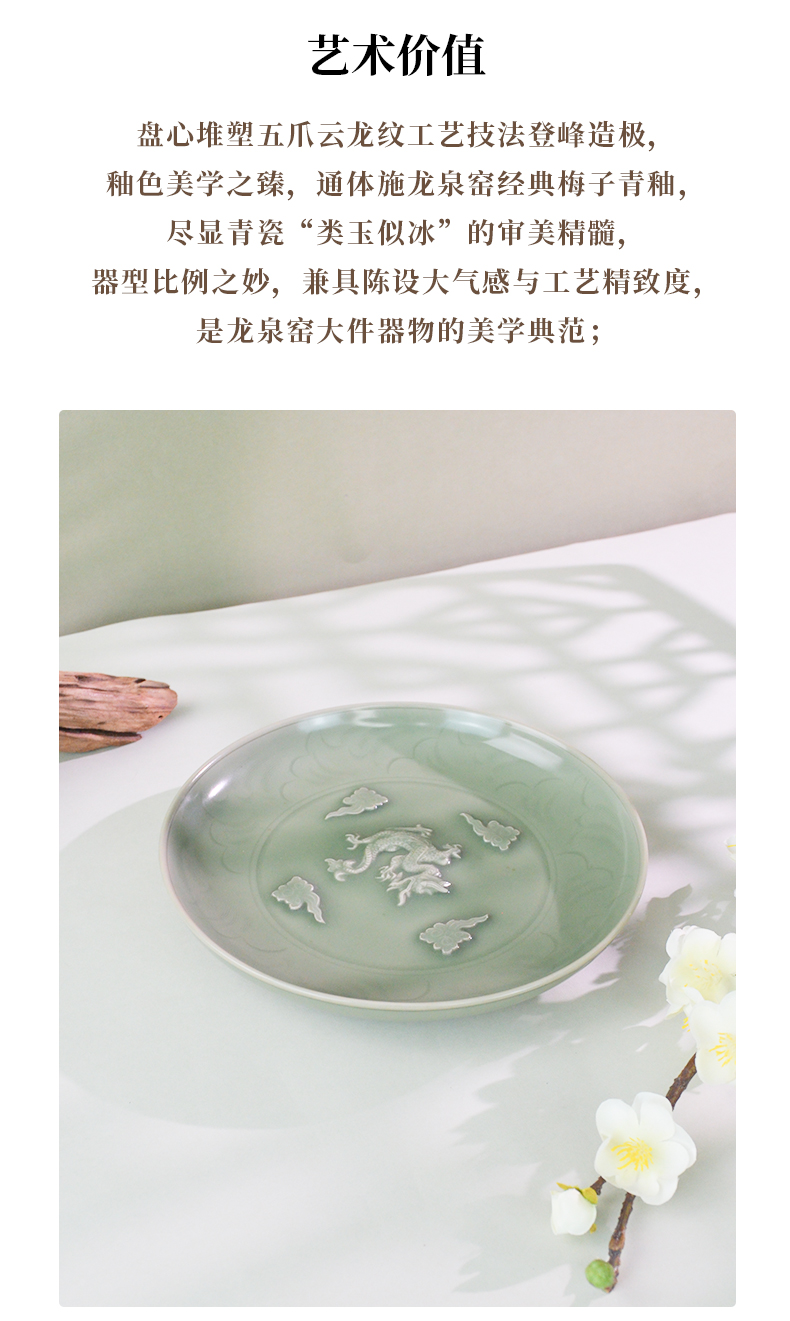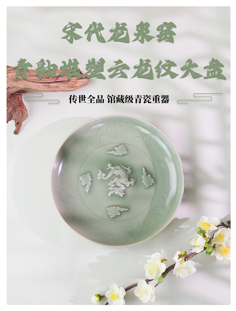 典藏级|龙泉窑青釉堆塑云龙纹大盘