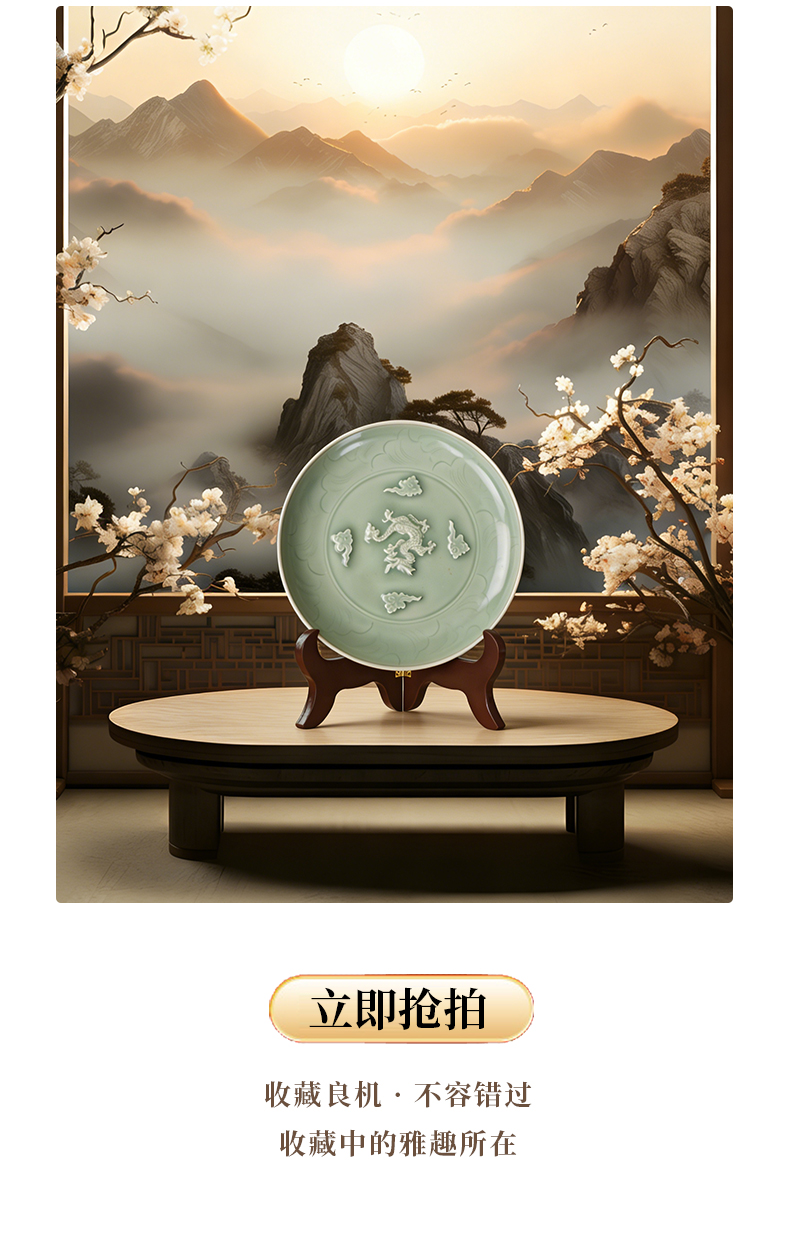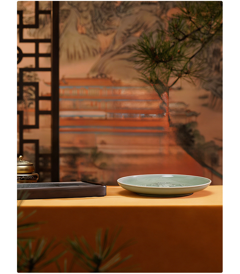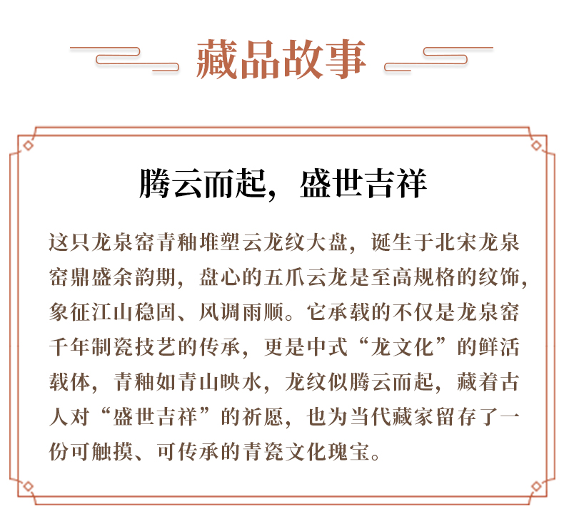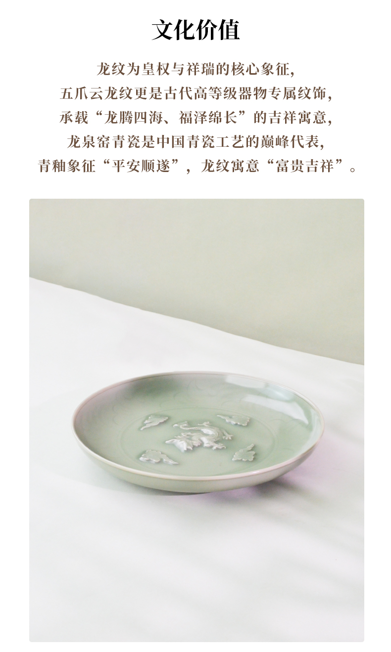 典藏级|龙泉窑青釉堆塑云龙纹大盘