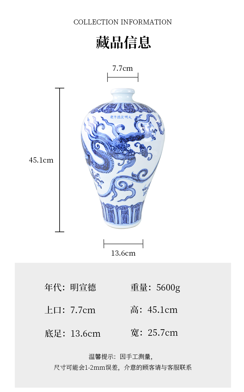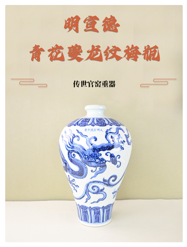 明宣德青花夔龙纹梅瓶