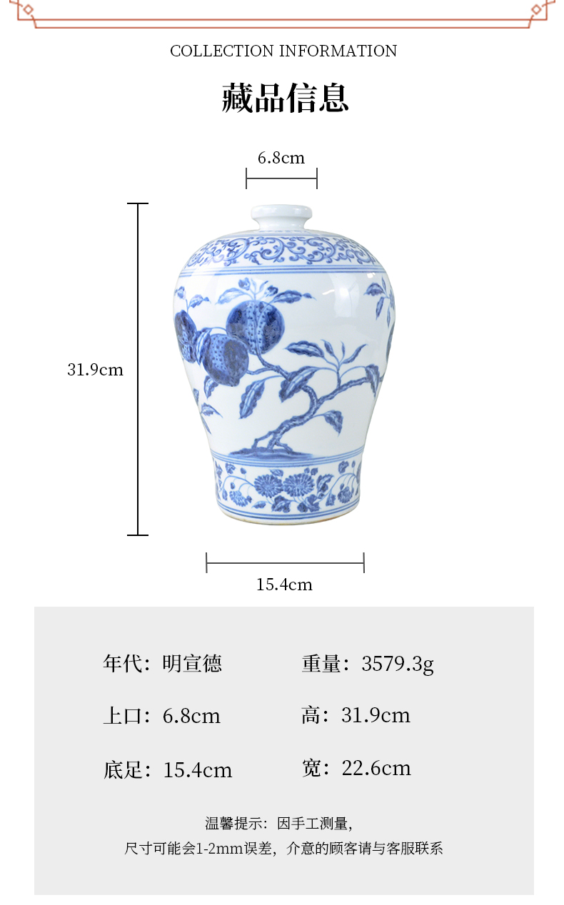 明宣德|青花折枝瑞果纹梅瓶