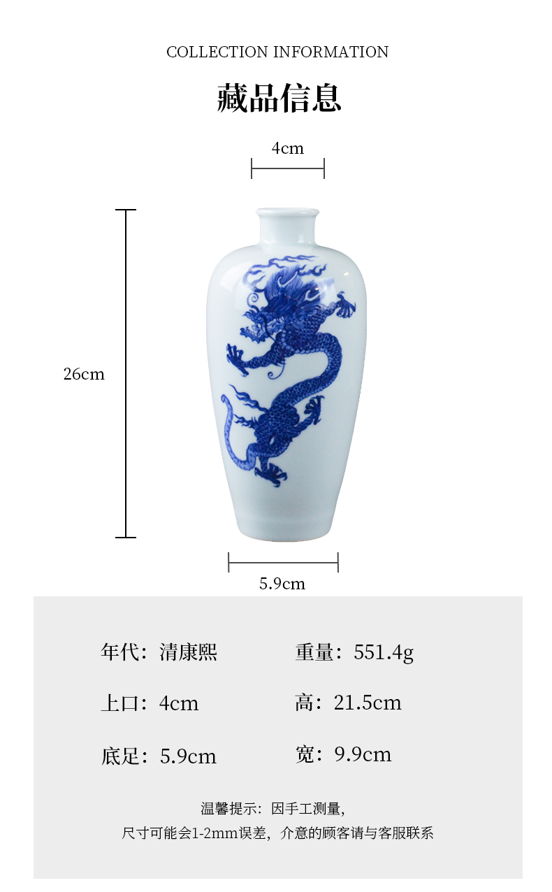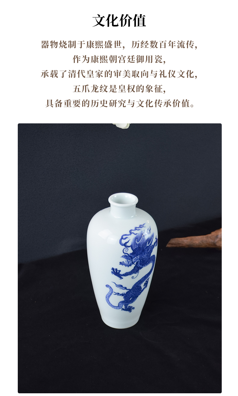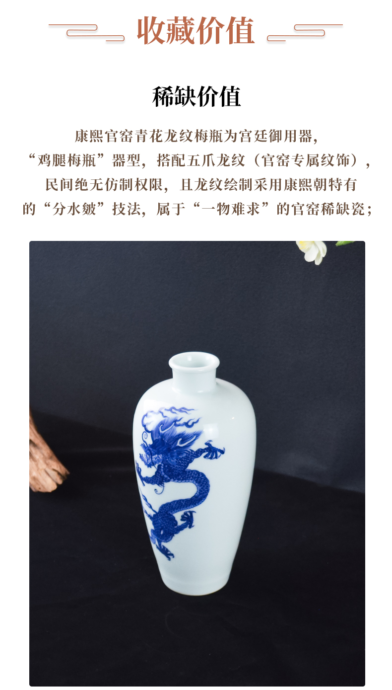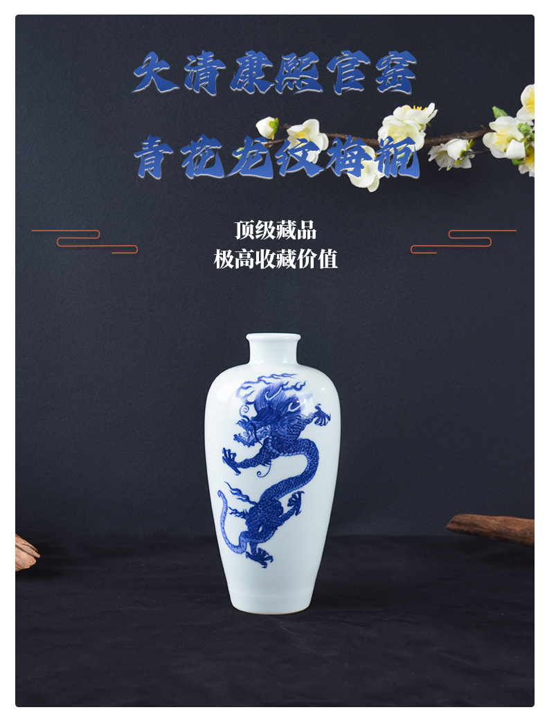 大清康熙官窑青花龙纹梅瓶